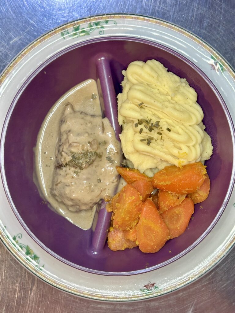 Semaine 4: Paupiette de bœuf, sauce brune, pommes purée, carottes glacées. 17.- Dans la boite ReCIRCLE à 10.- ou 0.- à l’échange.